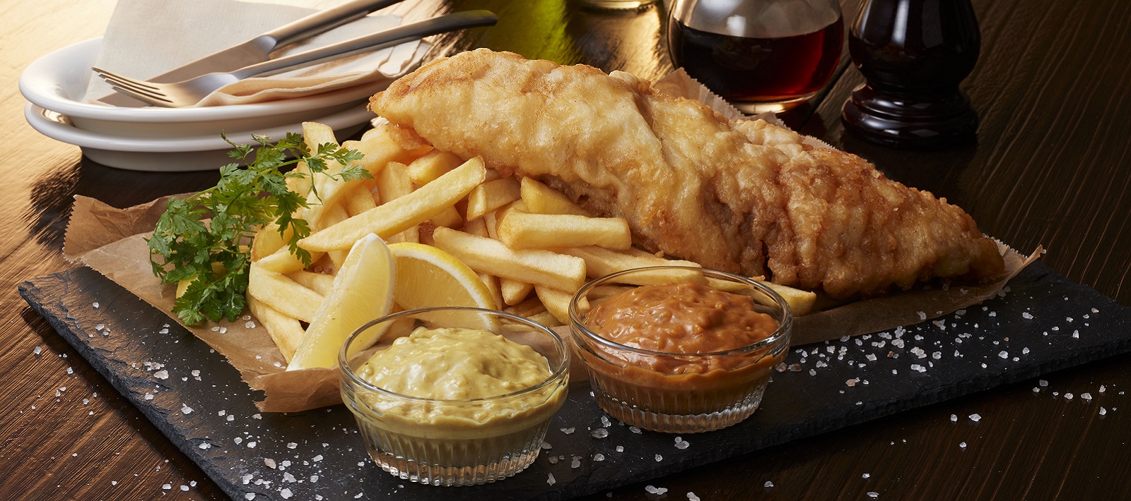 생선살을 튀김옷을 입혀 튀기고 구운 감자를 곁들인 음식이다. 영국 음식이 얼마나 종류가 없는지를 단적으로 보여주는 대표 영국요리이다. 실제로 먹어본 사람에 의하면 미국에서 파는 피쉬앤칩스가 훨씬 맛있으며, 영국식 조리법은 튀김옷이 워낙 두꺼워서 튀김옷은 맛만 보고 속 살만 적당히 발라먹는 사람도 많다고 한다.