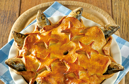 정어리 파이는 사진으로도 많이 진작에 봤을 엄청난 비주얼에 파이이다. 파이에 정어리를 넣고 함께 구운 음식이다. 저렇게 정어리 머리와 꼬리를 보이게 굽는 게 정석이라고 한다.